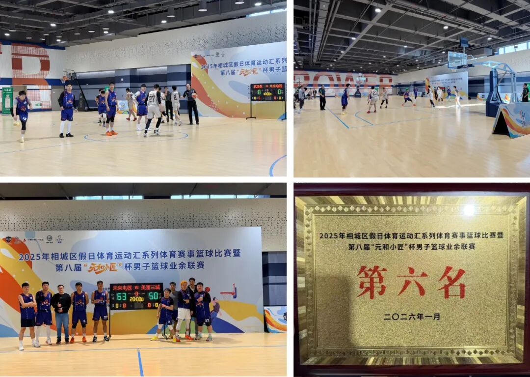 2026-02-28以篮球致敬热爱,以拼搏闪耀赛场。近日,2025年相城区全民运动会暨相城区假日体育运动汇核心赛事——第八届“元和小匠”杯男子篮球联赛,在久事体育(苏州)万体汇圆满落幕。历经12月至次年2月的多轮鏖战,苏州未来电器队全力以赴、奋勇争先,最终斩获中青年组第六名,用汗水与协作展现了企业团队的昂扬风貌。